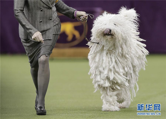 这是2017年2月14日,在美国纽约举办的第141届威斯敏斯特犬展上,一只可蒙犬一展风采。新华社/美联