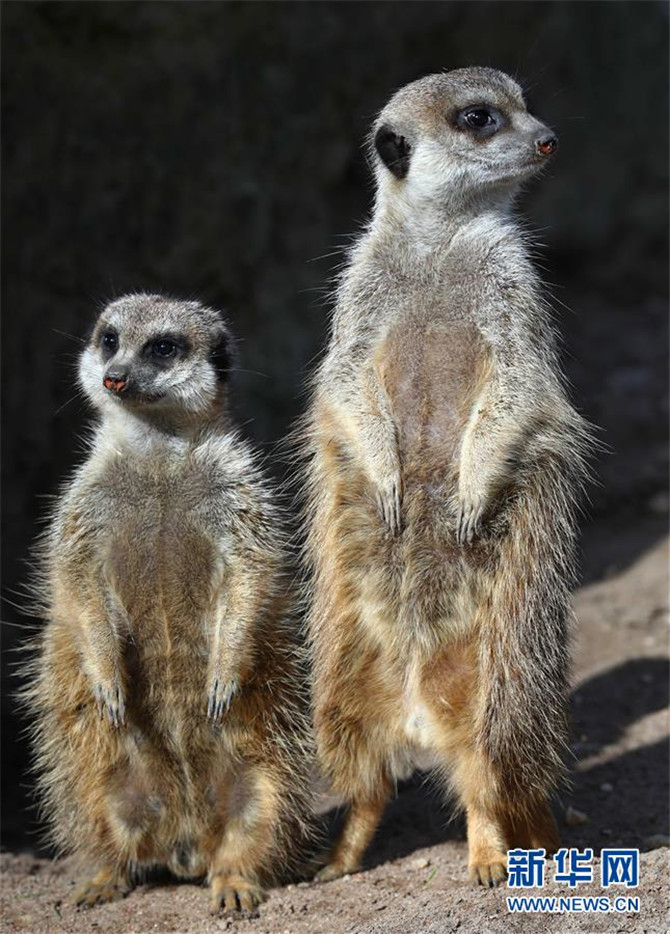 这是2017年4月5日在荷兰雷嫩市欧维汉兹动物园拍摄的两只狐獴。新华社记者 龚兵 摄