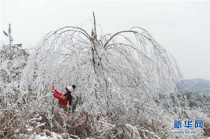 2月3日,雪后的贵州省贵阳市云雾山冰雪美景吸引游人前来观赏。新华社发(乔启明 摄)