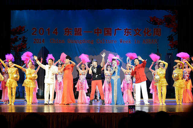 2014 东盟—中国广东文化周于9月23日下午5:30时在仰光国家剧院举行。展出中国艺术家们摄影下的缅甸各地风景名胜以及缅甸人民淳朴自然的生活图片,图片展览还展出中国广东各地风景和生活情趣。同时,广东杂技艺术团也表演精彩的杂技和舞蹈节目。缅甸联邦共和国文化部部长吴埃敏玖以及仰光省有关厅局领导、仰光国立文化与艺术大学校长吴觉乌、中国驻缅甸杨厚兰大使及使领馆官员莅临观看。顾民强团长和吴觉乌校长相继演讲,吴觉乌校长在讲话中热烈祝贺“美丽广东—海上丝绸之路建设”图片展和中国广东艺术演出成功。