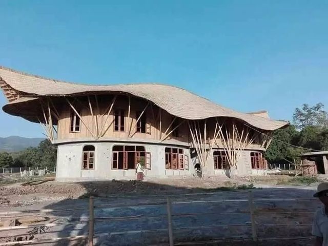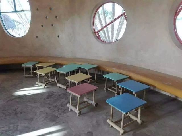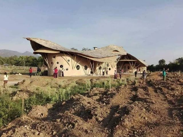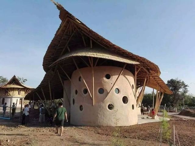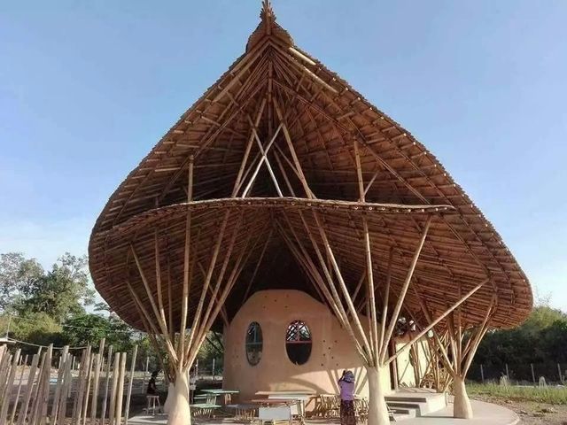 估计也只有在缅甸,才能将这么飘逸而浪漫的屋顶,用普普通通的竹子一搭就好,希望有这么划时代的学校,也能够培养出划时代的人才,这样的建造理念是很超前的,希望带来的不只是外表的更新,更是内里的进步。