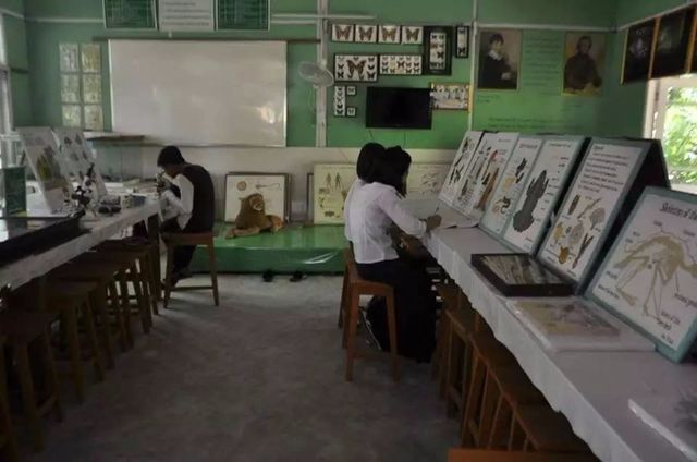 这样的学校要不要太安逸?木椅竹椅缅甸很常见,但是放在学校绝对是稀有。