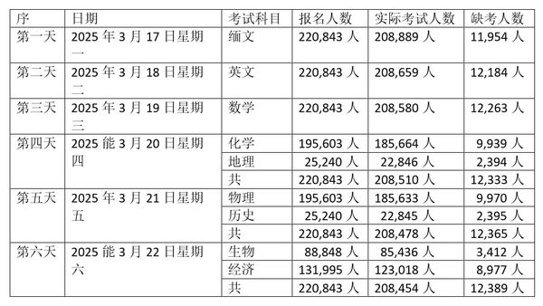 2025年度缅甸高考(或称大学入学考试)于3月17日开始举行,考试历时一周, 3月22日结束,共6天。