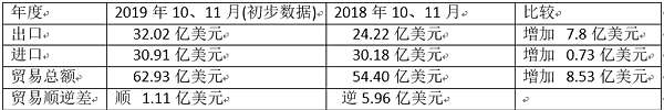 据12月29日出版的《缅甸之光》报报导,2019—20财政年度由10月1日开始,现在新财政年度头两个月(2019年10月及11月)的贸易总额与去年同期相比有所增加, 初步数据如下表(单位:美元):