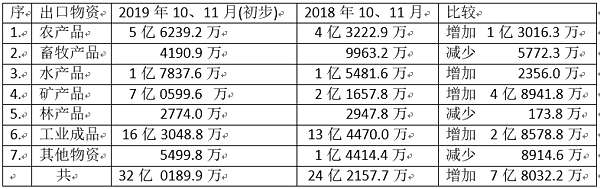 而各项出口物资与去年同期相比如下表(单位:美元):