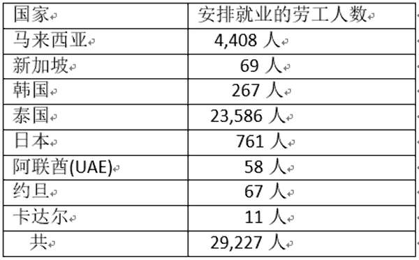 而安排前往国外工作者,其等所前往的国家及人数如下表: