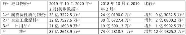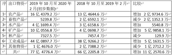 据3月20日出版的《缅甸之光》报报导,2019—20财政年度由10月1日开始,现在新财政年度头五个月(2019年10月至2020年2月)的贸易总额与去年同期相比有所增加, 初步数据如下表(单位:美元):