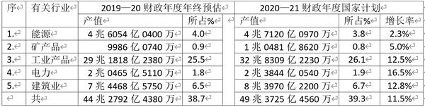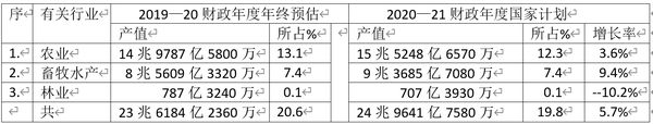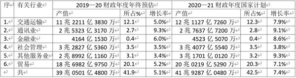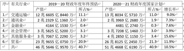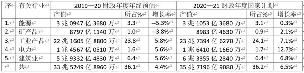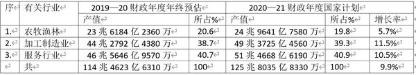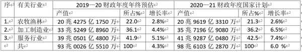 2020—21财政年度国家经济计划,各行业的生产总值预估如下: