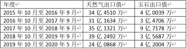 类似的图表,每隔一段时间官方报纸都会加以披露,让民众们了解自己国家的资源出口情况。最近一次就在2020年4月10日披露过一次(见《缅华网》4月11日“缅甸新闻”栏目中的有关报导),不过那时2019—20财政年度的数据只到2019年12月为止,这一次有关数据是直到2020年5月,这已是本财政年度8个月的出口数据了。从表中可发现天然气出口量有望达到历年生产的平均水平,而玉石的出口量现在8个月的出口量已超过了去年全年的出口量,虽然无法达到近年来最高出口量的水平(2017—18年度的玉石出口量是近年来的最高水平),但却是超过其他年份的出口量了。