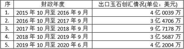 由2015—16财政年度开始,历年来缅甸向国外出口玉石的情况如下表: