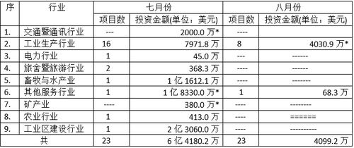 文章导读 缅甸投资委员会在今年七、八月份所批准的投资项目与金额