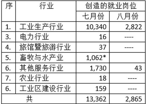 而这些国内公民投资的行业项目所创造的就业岗位如下表: