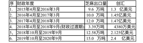 历年来缅甸芝麻的出口及创汇情况如下表: