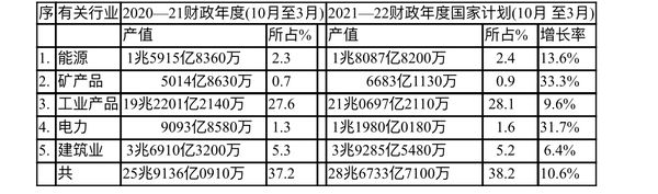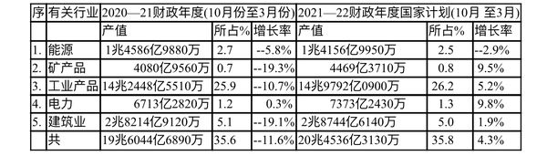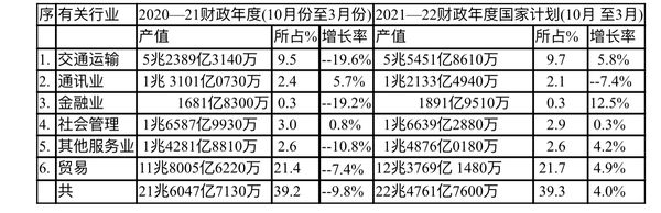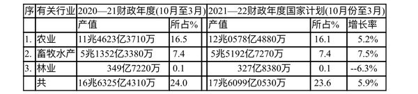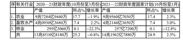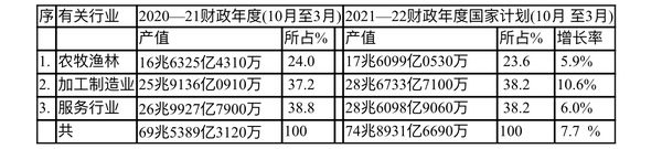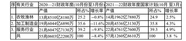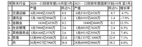 2021—22财政年度6个月过渡期国家经济计划,各行业的生产总值预估如下:
