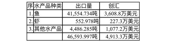 2021—22财政年度头两个月内由高栋口岸出口水产品的情况: