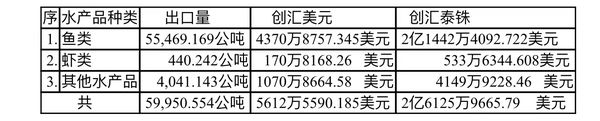 新财政年度5个月由高栋口岸向泰国出口水产品5万多吨