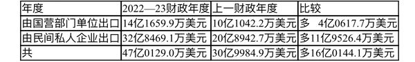 上一财政年度同期出口的工业成品,由国营部门单位出口的有10亿1042.2万美元,由民间私人企业方面出口的有20亿8942.7万美元,故去年同期这工业成品才户口共为30亿9984.9万美元。两相比较,今年这近5个月工业成品出口总量多收获16亿0144.1万美元。