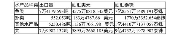 新财政年度6个月高栋口岸向泰国出口水产品近8万吨