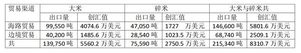 同期通过边贸渠道出口28,540吨碎米,创汇1023.5万美元。这当中由边贸向中国出口碎米27,200吨,出口泰国超过1,330吨。