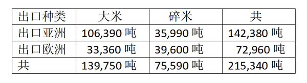 这期间缅甸通过海路贸易渠道出口碎米47,050吨,创汇1727万美元。这中间向欧盟国家出口39,600吨,向中国出口7,450吨。