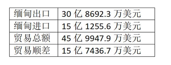 在上一财政年度同期,缅泰边贸总额为42亿8982.7万美元,所以本财政年度与去年同期相比,贸易总额多了3亿0965.2万美元。