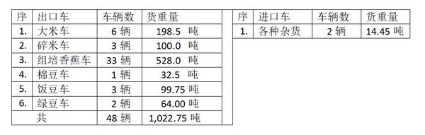 再据《缅甸之光》报3月2日报导,克钦邦雷扎(Lwejei)口岸2023年2月28日这一天进出口的车辆及所载的货物吨数如下: