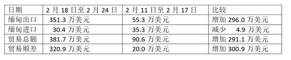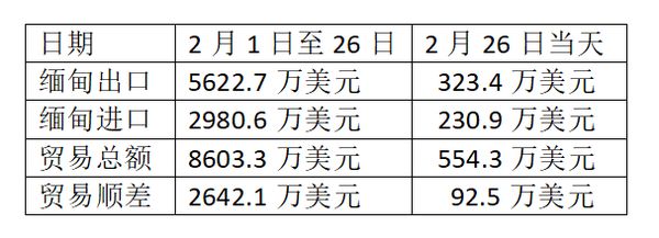 木姐105英里贸易基地2月1日至26日进出口贸易情况: