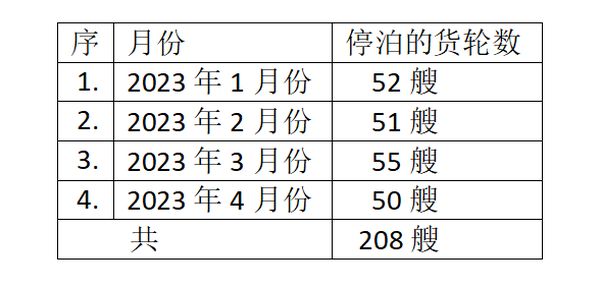 在今年(2023年)的头4个月内,进入仰光港口停泊进行贸易活动的国际货轮数如下: