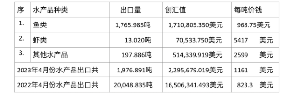 高栋口岸2023年4月份水产品出口情况: