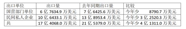 在出口这些工业成品时,由国营部门单位出口6亿7634.9万美元,由民间私人企业出口10亿6433.1万美元,故共出口了这工业成品17亿4068万美元。