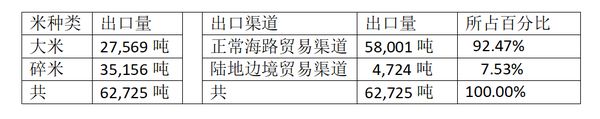 出口渠道方面,由正常海路贸易渠道出口了这大米碎米58,001吨,由陆地边境贸易渠道出口4,724吨,出口时由海路贸易渠道出口占了绝大比例。