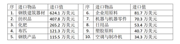 而这一周内进口最多的十大物品为:
