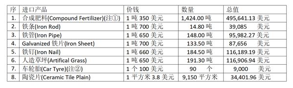 在以上表格中,许多产品1吨价钱与吨数相乘时与货物总值有一些差别,不知是产品品质有差异还是其他原因造成的。