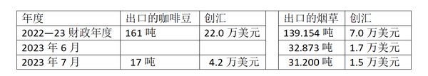 咖啡豆是一高价值的经济作物,今后其出口前途相当广阔。而烟草,也可以说是一经济作物,但因为“吸烟将严重损害身体健康”,一些卫生组织一再要求停止(至少是减少)生产这作物,故是否应扩大生产这烟草作物,还是有人有不同的看法。