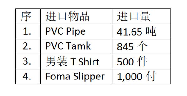 而进口物品则如下: