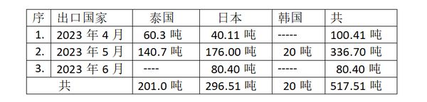 这样出口的时候,4月份出口60.3吨蜂蜜到泰国,出口40.11吨蜂蜜到日本。而5月间出口140.7吨蜂蜜到泰国,出口176吨蜂蜜到日本,出口20吨蜂蜜到韩国。在6月份期间则只出口80.4吨的蜂蜜到日本这一个国家。