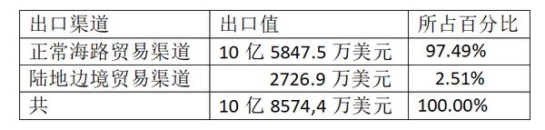 缅甸的七大产品出口中,工业成品出口量位居首位。这工业成品出口中,又以CMP成衣出口量为最多。但不同于其他产品出口的是,这CMP成衣出口绝大部分都是由正常海路贸易渠道出口的,由边贸渠道出口的只有2.5%。