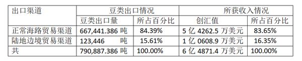 出口渠道方面,海路渠道出口约占豆类总出口量的六分之五以上,边贸渠道出口约占豆类总出口量的六分之一。