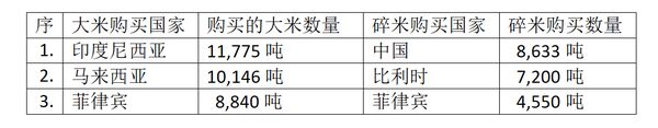 出口国家方面,在9月份时向印尼出口的大米为最多,达到11,775吨,向马来西亚出口10,146吨为第二,向菲律宾出口8,840吨为第三。共向27个国家出口了此大米。
