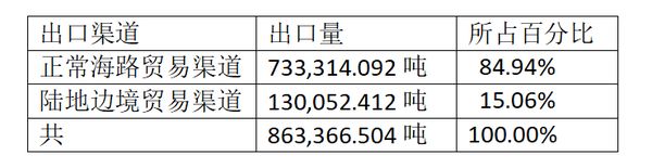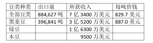 这样向国外出口时,自4月1日至9月29日期间由正常海路贸易渠道出口了各种豆类733,314.092吨,由陆地边境贸易渠道出口130,052.412吨,故豆类总出口量为863,366.504吨。