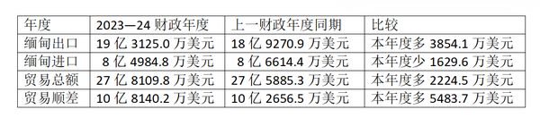 2023—24本财政年度由4月1日至10月6日这6个多月的时间内,6个边贸基地的贸易总额达到27亿8109.8万美元。这当中出口为19亿3125万美元,进口为8亿4984.8万美元。