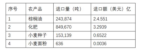 2023年4月1日至9月1日,从缅甸进口的11种主要商品中,农产品进口状况如下表: