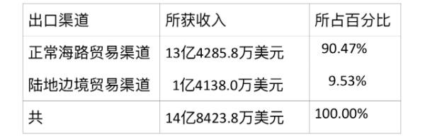 豆类出口的两个渠道中,由海路出口占了九成以上的比例,而由边贸出口不到一成的比例。