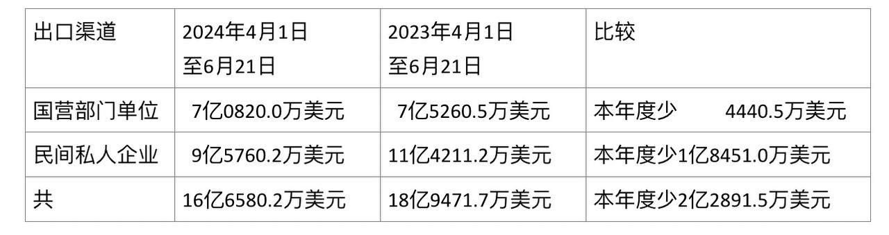 而在2023—24上一财政年度同期内,由国营部门出口了这工业成品7亿5260.5万美元,由民间私人企业方面出口11亿4211.2万美元,出口共为18亿9471.7万美元。故与去年同期相比,今年2个多月的时间里这工业成品出口少2亿2891.5万美元。