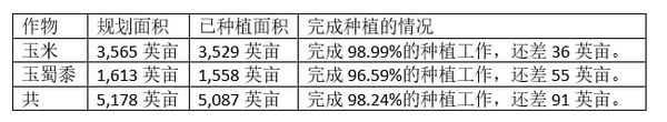 现财年甘布鲁县区规划种植的玉米玉蜀黍面积及目前完成的种植面积如下: