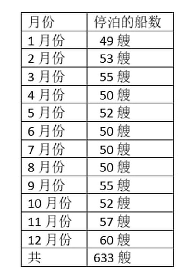 在这这一年内期间,每个月进入仰光港口停泊的集装箱船数如下: