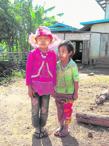 姐妹俩双颊涂上“塔纳卡”,是缅甸女生的天然防晒圣品。(马来西亚南洋网)