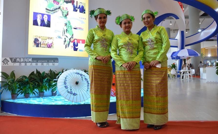 4.缅甸展区工作人员穿着女性传统服饰“特门”。全媒体小组 冼妍杏 摄