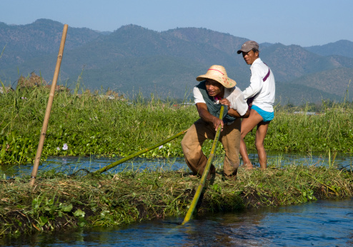 在此地,还有天然岛和人造岛。天然岛是湖里天然生长的浮萍,水草,垃圾杂物,淤泥,泥巴等自行混合在一处后,经过多年的风吹浪打,日久形成为岛。另一种人造岛是靠人工利用湖边章的水草,小杂树和芦苇等作框架,再把水草连泥巴和黑泥土,巨藻,再从陆地上运些肥土堆上,堆到高达三英尺至五英尺之后形成的。天然岛和人造岛上都可进行种植,为了使浮岛不被湖水冲走,他们利用长竹竿插到湖底,把造成的小岛加以固定后来种植作物。