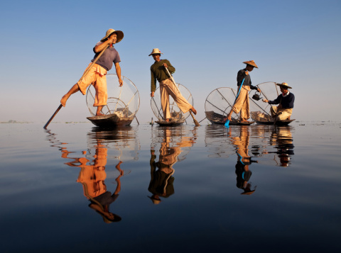 在茵丽地区,居民一出门就遇到水,因此从小就练会了用单脚划船的技术。无论是在生产,捕鱼和运输,还是赶集和拜佛,都依靠船出门。所以船成为他们的交通工具。这里的渔民捕鱼时不是用鱼网而是用竹篾编成的罩鱼笼。他们看准鱼换气时出现的水泡把鱼笼直插进水里去,若手有被震动的感觉,就把鱼叉从鱼笼上端的孔中插进去。,把捉在罩中的鱼用叉挑上来。